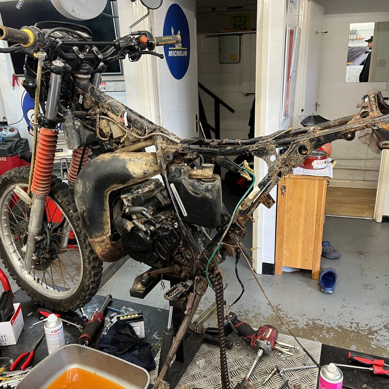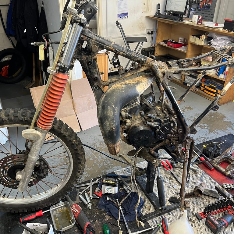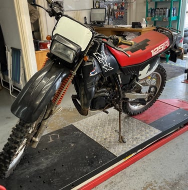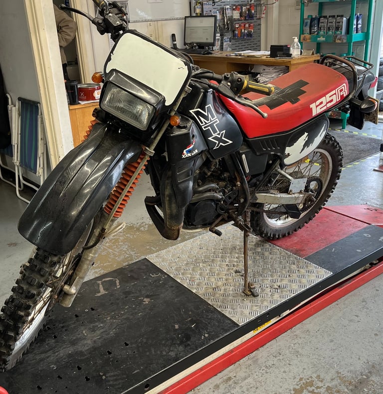 The Honda MTX 125R was a 2 stroke, liquid cooled, single-cylinder 125cc enduro bike manufactured from 1983 to 1986. Here we have an 85' model ready to be stripped for a full restoration, keeping it as close to original as possible. This later 1985 model with bigger front forks, a single disc brake in the front, revised graphics, CDI, and rear shock.